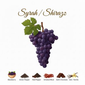 - 시라(Syrah): 주로 프랑스나 유럽에서 써요. 기후가 선선한 곳에서 자라 산도가 높고 우아하며, 미네랄과 후추 향이 강조된 스타일이에요.