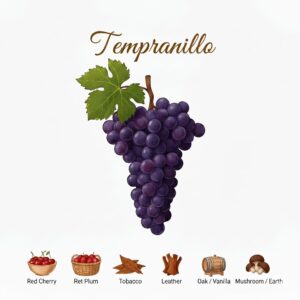 - 싱싱한 과일 바구니: 아주 어린 템프라니요는 딸기, 체리, 자두 같은 붉은 과일 향이 팡팡 터져요. 🍒